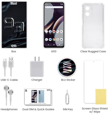 GSM Unlocked: Use your preferred GSM carrier with ease. Compatible with T-Mobile, Metro PCS, and others. Sim card not included. For availability on select networks, please consult your service provider. Note: This device is not compatible with AT&T/Cricket new activations or CDMA networks like Verizon and Sprint. Perfect Connection: Stay effortlessly connected to your entire ecosystem with NFC technology. Simplify your daily life with contactless payments, quick and efficient data transfers. Unleash Your Data: Conquer your digital world with the G93's colossal 6GB RAM and 128GB storage. Download, stream, and play without limitations. Next-Level Gaming: Ignite your passion with a blazing-fast 120Hz refresh rate display. Experience unparalleled smoothness and responsiveness, letting you dominate every level with unmatched gameplay. Raw Power: Equip yourself for victory with the cutting-edge Arm Cortex A76 Octa-Core MediaTek Helio G99 Processor. Crush every challenge and unlock new possibilities. Android 13 Ready: Immerse yourself in the latest advancements and optimizations with Android 13. The G93 is future-proof and ready for anything. Box content: G93, Rugged Case, Screen Glass Shield, Quick Guide, Sim Key, Charger, USB-C cable, Headphones Sticker.