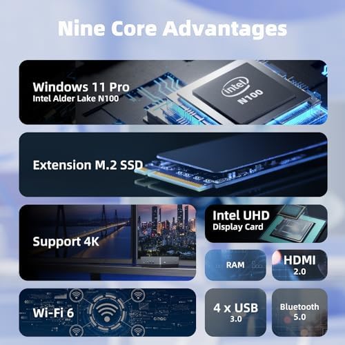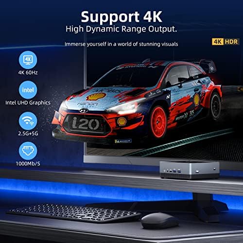 ?Latest 12th Gen Intel N100 Mini PC: Experience superior power with the CyberGeek Nano A1 Mini PC, equipped with the groundbreaking 12th Gen Intel Alder Lake Quad-cores N100 processor. With maximum speed of up to 3.4GHz and 4C/4T capabilities, this Mini PC surpasses the performance of Intel N5105 and N5095 CPU. It's the perfect solution for light office tasks like AI, PS, CAD, Office, PR, and Keyshot. Enjoy top-tier performance in a compact package with this small PC. ?Versatile Expandable Storage & OS: Witness remarkable storage flexibility with the CyberGeek Micro PC, offering options from 4GB to 16GB memory, and PCIe SSDs ranging from 128GB to a whopping 2TB. This impressive small desktop computer supports Win 11 Pro operating system. With its ability to deliver smoother operation and minimized lag, it stands as an excellent choice for home office mini pc. ?Exceptional 4K Dual Screen Display: The compact desktop pc supports 4K@60Hz dual HDMI output, enabling you to connect to two monitors simultaneously for enhanced productivity. Enjoy unparalleled visuals with CyberGeek A1 mini pc. It can be used with office equipments, projectors, servers, monitors, televisions, and more. Kind Reminder: When you connect your monitor to the mini pc via HDMI, please turn on the mini pc first, then turn on the monitor, this will ensure the sound works properly. ?Compact & Portable: The CyberGeek win 11 mini pc measuring just 4.39 in x 4.88 in x 1.67 in and weighing only 1.76 lbs, is compact and powerful. This small computer sleek design allows it to be mounted on the back of your monitor or HDTV, saving space and maintaining a tidy workspace. Its portability makes it a perfect companion for on-the-go work. ?Advanced Wi-Fi 6/BT 5.2 & Multiple Ports: Equipped with cutting-edge Wi-Fi 6 and Bluetooth 5.2 technologies, this N100 mini computers ensures high-speed data transfer. CyberGeek mini pc features multiple ports including 2 x USB 3.0 Gen 1 Type A Ports, 2 x USB 3.0 Gen 2 Type A Ports, 1 x USB 3.0 Gen 1 Type C Ports, 2 x HDMI 2.0, 1 x RJ45, 1 x DC-IN Jack, 1 x Micro SD card reader for connecting various devices and peripherals.