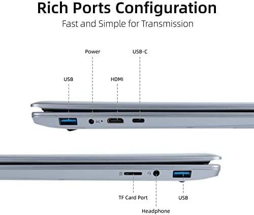 ?️【Take It Anywhere】Our ultra-thin and lightweight laptop is designed for portability. With a slim body of 2cm and weight of 1.65KG, it's perfect for business trips or traveling. The advanced 38000mWH rechargeable battery life of up to 8 hours ensures you can work or play on the go. ?️【Unleash Your Productivity】Powered by Intel Celeron N5095 processor with a frequency up to 2.9GHz, our laptop is faster and more powerful than normal processors on the basic frequency. The latest pre-installed Windows 11 system ensures a safer and faster experience. ?️【See More, Do More】Our 15.6" laptop with 1920*1080 high resolution screen provides you with a sharp and clear text and images. The 16:9 ratio expands the vertical space of the screen, showing more content, providing a comfortable visual experience and greater efficiency when browsing web pages or documents. ?️【Store More, Do More】With 12GB DDR4 and 512GB high-speed SSD, our laptop lets you use it without a problem even with multi programs open. An expandable TF card slot supports maximum 512GB TF card expansion and extensive interfaces such as HDMI, 2xUSB 3.0, USB Type-C, etc. ?️【Buy with Confidence】We stand behind the quality of our 2023 new laptops with strict standards for all stages of production. All laptop computers are subjected to 200 hours of machine aging tests before shipment to make sure each frame is working flawlessly. We offer a ONE-year limited warranty and easy solutions or fast replacements for any questions about our laptops.