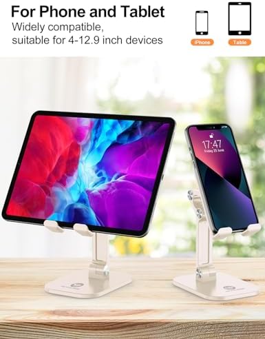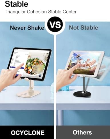 【Wide Compability】 OCYCLONE cell phone tablet holder stand works with all 4-12.9 inches smartphones and most tablets with cases, Compability with iPhone 15 14 13 12 11 mini Pro X Xr XS Max, Compability with Samsung Galaxy S23 S22 S21 S20 S10 S9 S8 Plus Galaxy Note 20 10 9 8 Plus. 【Height & Angle Adjustable】 The Height of the phone stand holder can be simply adjusted(3.74"-5.5"), the angle can be adjusted from 0° to 235° by hand. With this OCYCLONE cell phone holder, you can enjoy your movies, cooking, reading, studying, playing games, watching YouTube without any worries. Providing you comfortable viewing angle which helps to fix your posture and reduce neck & back ache. 【Super Sturdy & Fully Protective Silicone Pad】 OCYCLONE Desk phone stand with premium Aluminum + ABS material makes it more durable than others. Quality non-skid rubber covered on the front and the bottom can mamximum protect your phone from slide and scratches.You can easily tap the screen without worrying the phone will tip over or fall off. 【Hands Free & Portable】 The foldable design of the phone stand makes you easy to carry your phone and ipad everywhere, you can put the stand in the bag or on the body. Undoubltly, It is a great ideal accessories for you take it any place, of course it is also a great ideal gift for your family or your friends. They will definitely be satisfied with the portable phone holder. 【Friendly User Design】 The reserved charging hole makes it more convenient to charge your devices while using this tablet/ phone holder. In addtion, the silicone hook pad will not cover the subtitle when you watching movies. OCYCLONE always aims at providing our customers the best happy shopping experience. If you have any confusing, please get in touch with us, we will answer you within 24 hours.