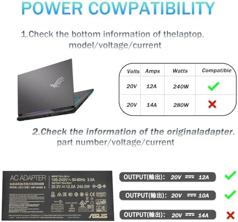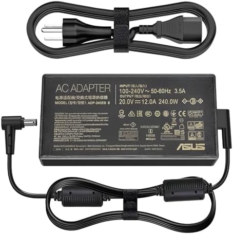 Compatible Adapter P/N.: ADP-240EB B Specifications: Input: 100-240V 50-60Hz Adapter Output Voltage: 20V Adapter Output Current: 12A Adapter Power: 240W Adapter Plug Size: 6.0x 3.7mm a pin in center Compatible Model: For Asus ROG Zephyrus M16 GU603HR GU603HM For Asus ZenBook Pro Duo 15 OLED (UX582) For Asus ROG Zephyrus Duo 15 SE (GX551QM) For Asus ROG Zephyrus Duo 15 GX550LXS GX550LWS For Asus ROG Zephyrus S17 GX701LXS GX701LWS GX701LV For Asus ROG Zephyrus S15 GX502LXS GX502LWS For Asus ROG Strix SCAR 17 G733QM G733QR G733QS G733QSA For Asus ROG Strix SCAR 15 G533QM G533QR G533QS For Asus ROG Strix G15 G513QM G513QR G513IM For Asus ROG Strix G17 G713IM G713QR G713QM Compatible Model: For Asus ROG Strix Scar 15 G533QS G533QS-XS98Q G533QS-HF083TS G533QS-HQ132T Package: 1 AC Adapter + 1 Free Power Cord High quality with 100% brand new over charge, over current, over voltage, short-circuit and over heat protection High precise output voltage, small wave and low interference Made of quality components and circuit board Safe and durable