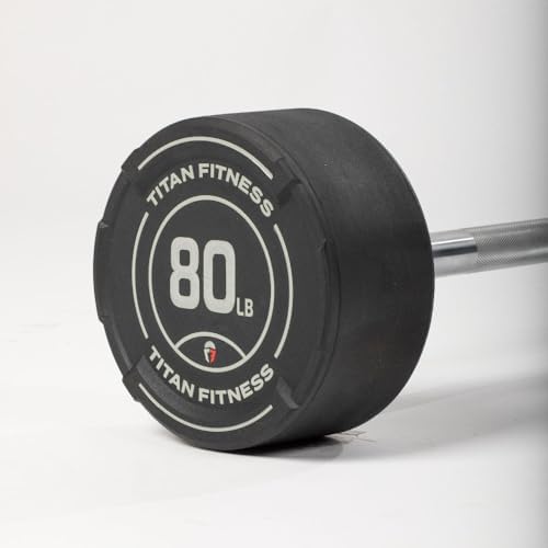 Titan Fitness Rubber Curl Fixed Barbells, Pre-Loaded Weight Bar for Strength Training & Weightlifting